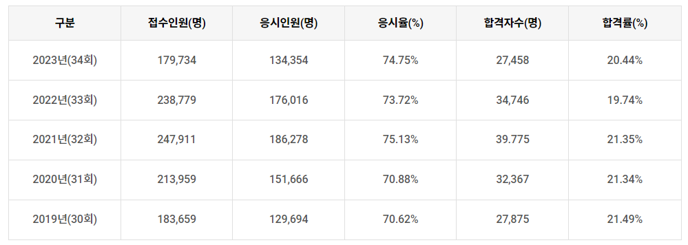 - 시험일정 : 매년 1회 10월 중순 경
