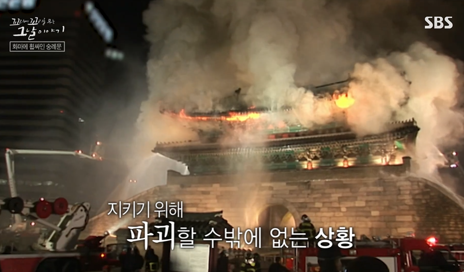 - 그로인애 숭례문 2층 90%가 소실되었다.